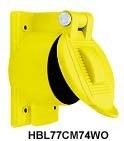 Yellow polycarbonate lift cover plate for weatherproofing 50A receptacles. Meets requirements of the most stringent of UL's three listing categories for weatherproof plates. Stainless steel screws and a neoprene gasket included. For mounting to FS/FD type weatherproof boxes.