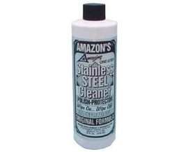 The latest in water-based stainless steel cleaners! Amazon's will not yellow or stain and is odorless, making it great for galleys and appliances, hardware, ladders, etc. Easy wipe-on, buff-off for quick removal of fingerprints, watermarks, grease and grime. Leaves a beautiful finish and a coating of protection to keep stainless looking great.Biodegradable.