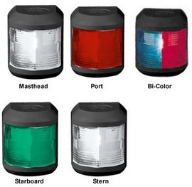 For sailboats or powerboats up to 65'. Rigid polycarbonate construction, non-magnetic black housing. 12V/25W bulb included. Diameter of lights is 3.2" height is 4.1". Visibility is 2nm for all lights except masthead which is 3nm.