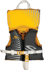 This garment is treated to inhibit the growth of odor-causing bacteria, mold and mildew caused by storing wet vests. It is environmentally-friendly and non-toxic. These closed sided vests are acceptable for personal watercraft, waterskiing or similar towed uses. Infant size under 30 lbs. Color is abstract wave blue or gold/black.