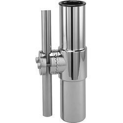 Chrome plated brass and bronze with hard black plastic liner. Clamp-on feature eliminates rail drilling and simplifies relocation.