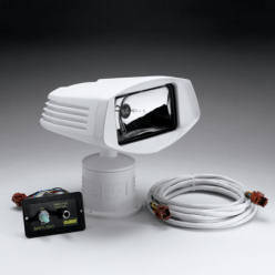 100,000 candlepower halogen sealed beam spotlight. 355 degree horizontal rotation and 80 degree vertical sweep. The ABS housing is corrosion resistant and will retain it's like new look for years. The remote panel features a single joystick control for easy, precise aiming. Includes spotlight, joystick control panel and 15' wiring harness.