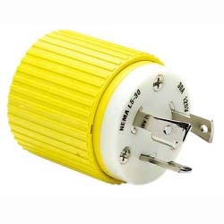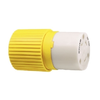 30 Amp, 125 volt. Yellow nylon body, nickel plated contacts, triple grip nylon cord clamp.