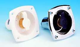 Comes in Flush White or Chrome with 1/2" NPT port or In-Line with 3/4" GHT