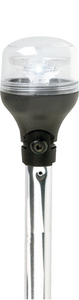 These LED lights are smaller, 60% lighter by weight and 30% brighter than older LED models. Two-mile, 360 degree visibility for use on boats up to 39.4' (12 meter). Anti-glare lens. Fold-Down bases allow light to swing 180 degree. Big cam-lock handle is easy to grasp and release for quick tilt and adjustment of the light pole. Once locked, stays locked in normal conditions. In extreme conditions, the cam-lock releases and allows base to swing down. Bases install with required #10 fasteners. 10 year warranty. Comes with both vertical and horizontal mounts. 3 variations available: 12" and 20" with aluminum pole and 12" with black plastic pole.