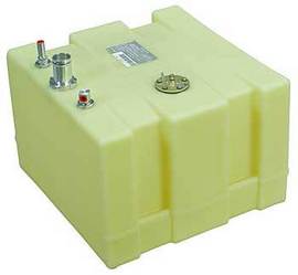 Polyethylene tank which is corrision and pit resistant. Each tank is complete with hose tite, machined aluminum fill spouts, withdraw and vent fittings molded direclty into the shell. Withdraw fitting has 360 degree rotational capability for hook up convenience. Conforms to all ABYC, NMMA and US Coast Guard regulations. Size: 18.5" L x 17.75" W x 12.50" H 15 Gallon Capacity