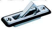 Spring loaded. Can be mounted vertically or horizontally. Chrome plated zinc with black plastic finishing flange.