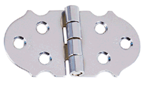 Chrome plated stamped brass. Screw size is 8. Overall height is 1 1/2". 2 per card