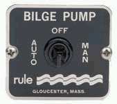3-Way Panel Switch Similar to the Lighted Panel Switch but without indicator light or fuse holder. The "manual" postition has a "fail-safe" spring return to "off" so you can't leave your pump running by accident. Black stainless steel panel.