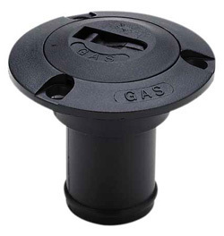 Cap marked 'GAS' is attached to a stainless steel beaded chain. Rubber gasket included for secure closing. Built-in tap for easy opening without special tools. Fasten with #10 screws.