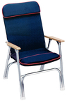 High back canvas chairCanvas back has a handy storage pouch for magazines, books, etc.Double leg construction for added support 1" anodized aluminum tubing frameVarnished arm rests