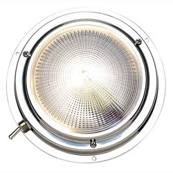 Seachoice dome lights are stainless steel with diffusing glass. Built in toggle switch and electric socket designed to take a regular double contact bulb. Available in 2 configurations: 4" with 5 1/2" base diameter, 1 5/8" deep. 5" with 6 3/4" base diameter, 2" deep.