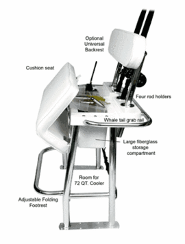 secure dry storage of tackle and gear. Folding footrest and removable optional