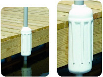 Easily slides over 1 1/2" dock pipe and rests securely against the dock. Molded