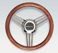 Mahogany grip with stainless spokes.