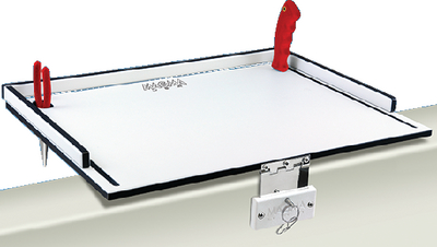 UV stabilized, high-density polyethylene for mildew free, crack free, and maintenance free use. It will not absorb fish odors. It attaches and detaches instantly. The included quick release stainless steel hinged mount folds completely flat for compact storage. Comes completely assembled. All edges and corners are rounded. Fillet knife and pliers not included.