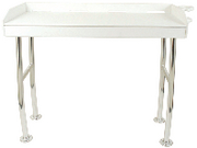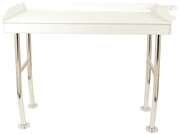 Permanently mounts on the dock. Made from U.V. stabilized, high density polyethylene, the table includes six bolts to secure each leg to the dock. Also includes a water nozzle holder for convenient use and clean-up. Features a drink holder that mounts to the side of table. Holds up to 250 lbs. 3 Year warranty. 48"W x 21"D x 37"H.