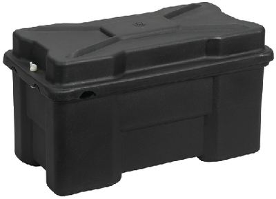 Molded of durable polyethylene, maintain their tough impact properties down to -40?. Feature seamless, heavy wall construction, superior chemical resistance eliminating concerns of electrolyte spills or contact with grease/oil and full flow ventilation to ensure adequate cooling to enhance the longevity of the battery. Available in black only. When properly installed complies with USCG code of Federal Regulation #33, Sub-chapter 183.420.