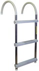 Ideal for swimming, skiing and emergencies. Floats. 15" wide. Hooks fold flat for easy storage. Vinyl covered hooks. All aluminum adjsutable standoffs for correct fit and fold down when not in use. Comfortable and sturdy white traction molded plastic steps.