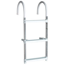 Available in 3 or 4 step models. Features: Non-anodized aluminum tubing. Polyethylene steps. 11" hooks and support legs. Folds flat for storage.