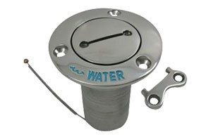 Constructed of 316 stainless steel. Seachoice deck fills feature security safety chain to prevent lost caps.