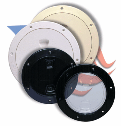 The Beckson Screw-Out Plate was designed to provide access without the use of tools, with a single start, non-jamming (no cross-thread), extra strong, self-cleaning buttress thread. They incorporate a self-aligning center and an innovative gasket to assure a watertight seal. A patented back-up sealing wall leaves the plate waterproof, even if the gasket is removed. A screw-out plate should be used in compartments where a change in air pressure due to temperature or oil canning can occur. Deck plates also are used for access, inspection,and clean out for tanks and compartments, or just as a general access for shut-off valves or back- fastenings. Our clear center plates permit observation of controls or gauges and visual inspection without the necessity of removing the plate.