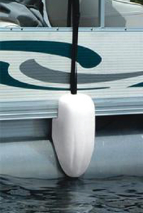 The Pontoon Fender is specifically designed to fit snugly between the pontoon and the deck of the boat, protecting both from rafting boats, docks, or other objects. All pontoon fenders are made from our own marine-grade, U.V. resistant vinyl and have an integrated rubber football style valve for easy inflation. Color is white: 9"W x 16"L