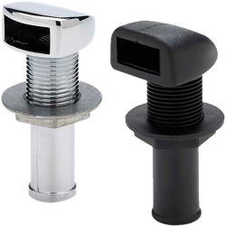 Accommodates 5/8" (1.6cm) hose. Maximum hull thickness: 3/4" (1.9cm). Meets USCG Safety Standards.