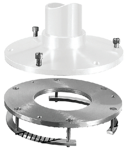 Sandwiches deck for positive reinforced installation. Allows base and seat to be removed. Anodized aluminum 3/8" thick, 3 stainless cap screws, allen wrench and backing brackets included. Adapts to all models. 9 1/4" diameter.