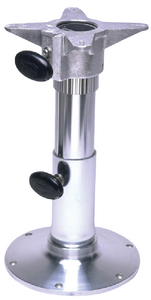 2-7/8" diameter stanchion tube, 9" diameter base plate. Locks at desired height. 4 prong spider swivels 360 degree and locks. Aluminum. Available in 12" to 17" and 18" to 24"