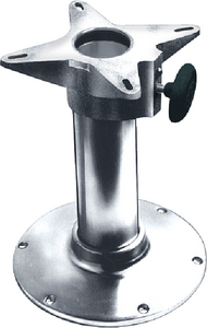 2-7/8" diameter stanchion tube, 9-1/4" diameter base plate. Mounts any seat securely. 4 prong spider swivels 360 degree and locks positively. Aluminum. Model 75234 is anodized.