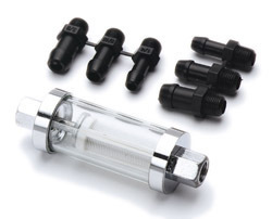 Universal in-line filter. Clear body permits visual inspection. Protects all fuel systems from pollutants and is easily replaced. Fits 1/4, 5/16, and 3/8-inch lines.