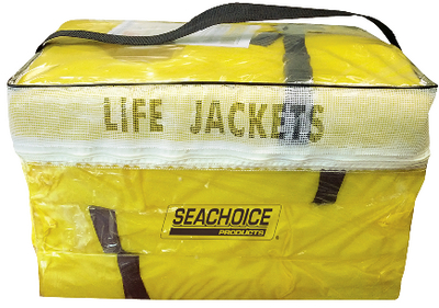 UV resistant marine grade vinyl carry bag. Contains (4) adult sized Universal Life Vests (Type II PFD). 20"L x 12"W x 10"H.