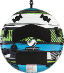 Grab a friend or race across the water solo. Heavy-duty PVC construction combined with a rugged nylon cover and anti-abrasion pads to protect knuckles, elbows and knees. Easy to inflate and deflate with the Double Lock valves and stays inflated thanks to the Airtight® System that is guaranteed not to leak. The double-hook on the Quick Connect attachment makes a secure connection to the tow rope easy. 60" diameter, 1-2 riders.