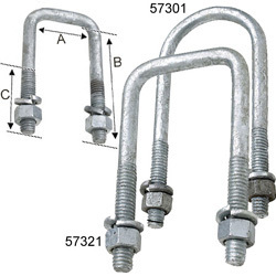Solid galvanized steel U-bolts with nuts and lock washers. Please click on the view items button for a specification chart and available sizes.