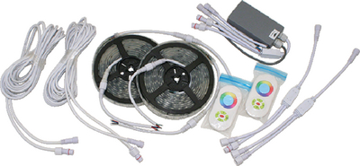 All in one RGB LED Flex Light Kit. Contains all the components needed to create your orwn LED light show on the water. Color RGB, LED flexible light strips in a DIY kit. Comes with 2 16' lengths. Each kit includes 1 light strips, RGB controller with 2 RF wireless remotes, 2 RGB 20' extension cables and 2 RGB Y connectors.