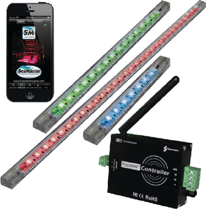 SeaMaster Multi-Color lighting, create custom color for any application! 80' total length. The RGB LED WiFi Kit comes ready to install with free access to the DIY SeaMaster RGB LED APP (Apple & Android ready). Create any color to match your hull, bimini or other custom accessories....new colors every time or save your customized colors to your device. The lights are completely potted for superior protection designed to outlast saltwater conditions that typically cause failure in other LED?s. All SeaMaster Strip Lights are covered with a Lifetime Warranty.