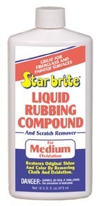 Liquid formula rubbing compound available in 2 options light-medium oxidation or heavy. Removes stains, medium oxidation, and light scratches. Use on fiberglass, metal, and painted surfaces. Great for hand or buffer application. Will not "set up" like old fashioned rubbing compounds which speeds up the buffing process.