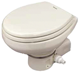 Fitting a standard marine toilet in a small boat head usually meant sacrificing comfort and appearance for the sake of fit and function. However,the Omnidirectional Rotating Base Installation Technology puts a whole new spin to basic marine heads with the new MasterFlush 7100 series of Orbit toilets. By providing a full 360 degrees of bowl-to-base rotation,the Orbit toilet base can be positioned in any configuration to maximize even the smallest installation space and accommodate diverse plumbing layouts.Employing the same large enameled seat and deep ceramic bowl size of a residential round-front toilet,the 7100 toilet series introduces a new path to better comfort for owners of small boats. Smoothly contoured seat-to-bowl design conveys an expensive look ? without the extra cost. And the deep,rounded slope adds not only to the appearance,but also to splash-resistance during use and while underway. As with all Dometic MasterFlush toilets,the 7100 series assures trouble-free,odor-free performance by virtue of its unmatched maceration effectiveness. A rugged,glass-filled nylon twin impeller instantly draws effluent into the macerating chamber,where the 10-bladed stainless steel cutting wheel pulverizes waste and ejects it to the discharge line/holding tank.