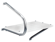 Made of high density white polyethylene and stainless steel. Includes one wrap around rail and one underside support rail. Durable and easy to clean. Rail height above and below platform is 12-1/2". For use on outboard transoms.