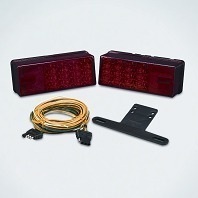 LED Low Profile Trailer Lights. Designed to take advantage of LED technology. 100,000 hour service life, reduced consumption, no bulbs to change. Choose from Left side (drivers side) or Right side (passenger side) or complete kit which contains both lights, license plate bracket, 20' wishbone trailer harness, 4' trunk connector and 8 metal clips.