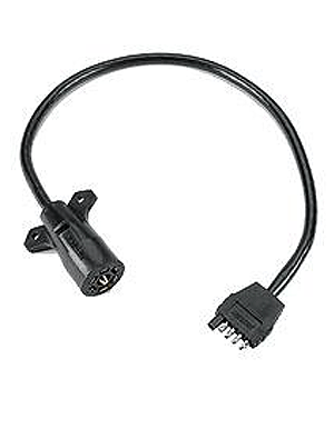 Connects newer 7 way round outlet to standard trailer side 5 way plug. Wire length is 18".