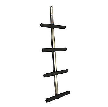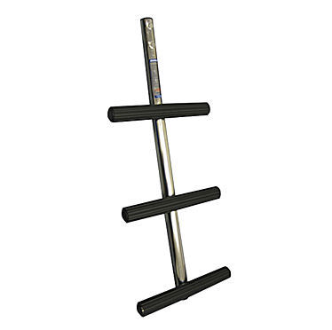 Features 1" stainless steel tubing, this strong and steady ladder provides non-slip contoured wide plastic steps for very comfortable boarding. Rated for 250lbs workload. Vinyl covered hooks fold flat for storage.