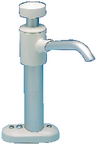 This vertical hand pump with an angled spout and 3-1/2" - 15-1/4" adjustable height is ideal for narrow spaces between sinks or anywhere space is limited. It delivers a smooth water flow on the up and down stroke. Ideal as a back up pump for electric systems,this pump handles fresh or salt water. 1/2" hose connection,self-priming up to 10'. 2.2 GPM