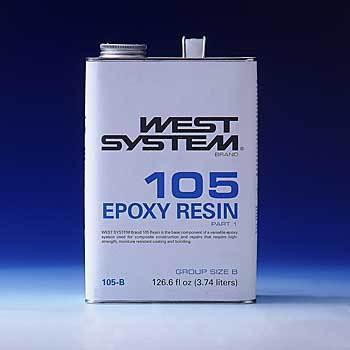 105 Epoxy Resin is the base material on which all West System 105 System epoxy compounds are built. The resin is a clear, pale yellow, low-viscosity liquid epoxy resin. Formulated for use with West System hardeners, it can be cured in a wide temperature range to form a high-strength solid with excellent moisture resistance.